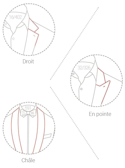 C’est un revers de veste particulier avec une courbe infinie. Ce choix de revers est généralement choisi pour un smoking. Cette forme sera choisie par celui qui souhaite apporter du changement à son style. Toujours choisir un revers en satin, qui apportera un joli et distingué contraste avec le tissu de la veste.