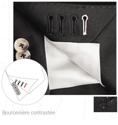 Détails parmi les détails, la boutonnière faite à la main, appelée Milanaise est le signe des connaisseurs.