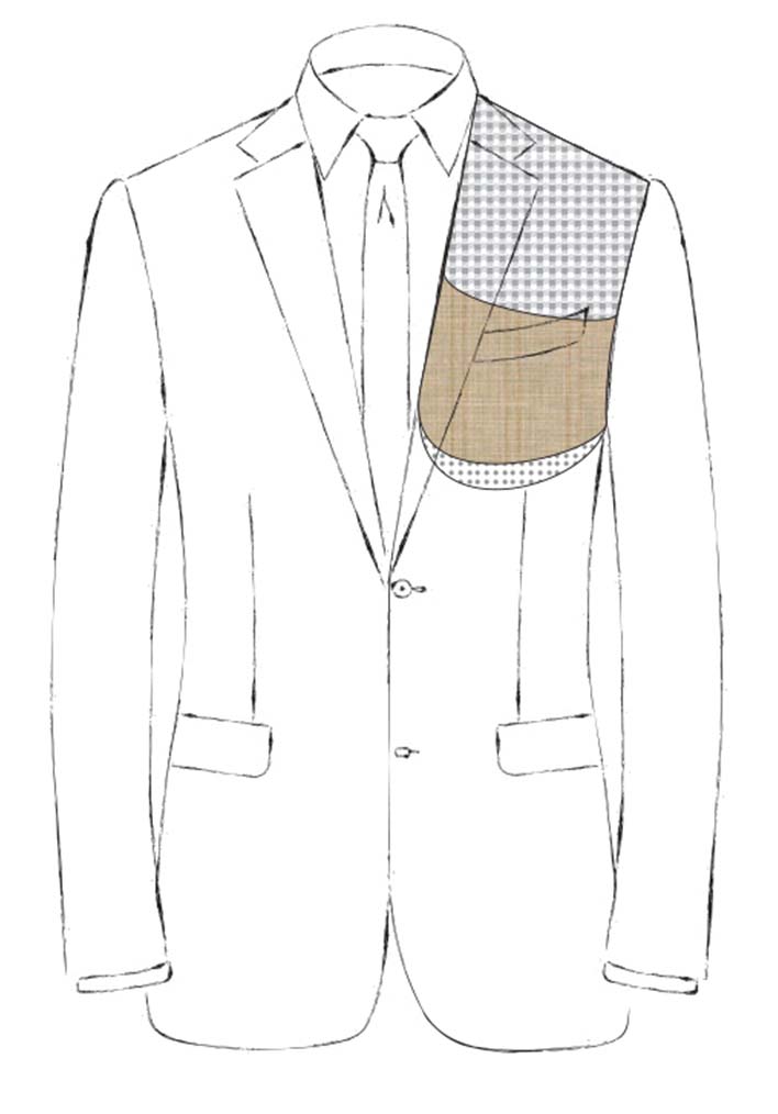 The inside of construction of a jacket concerns the front, the shoulder and the upper sleeve. Depending on the style of the suit, the shoulder and sleeve header shall be considered a priority.